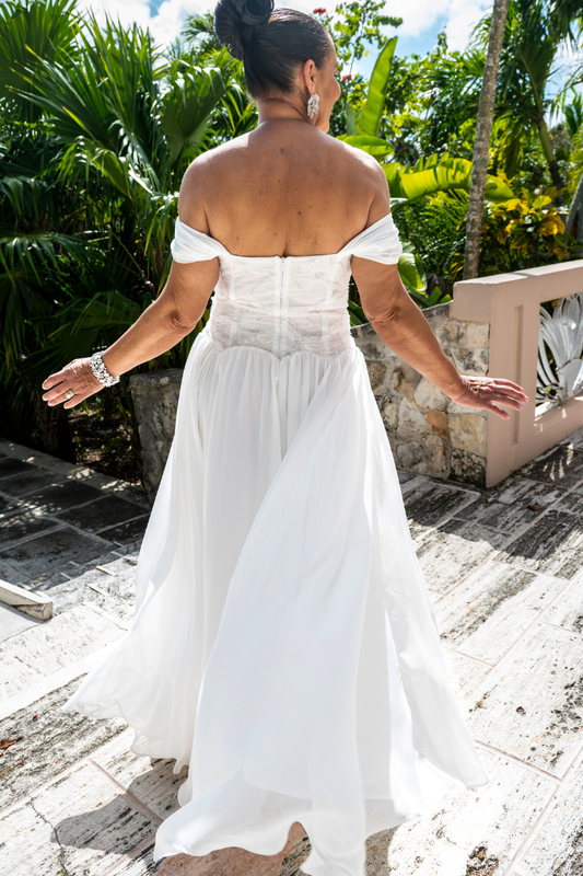 Beaded Flower Design Off-Shoulder Flowy Formal