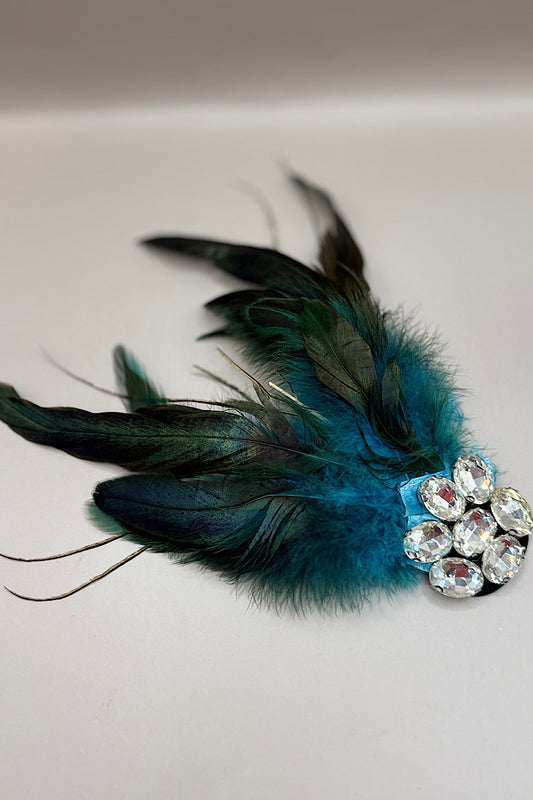 Rhinestone Peacock Feather Brooch