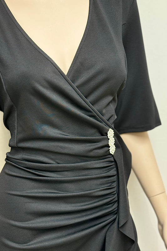 Side Ruched Rhinestone Pin Dress