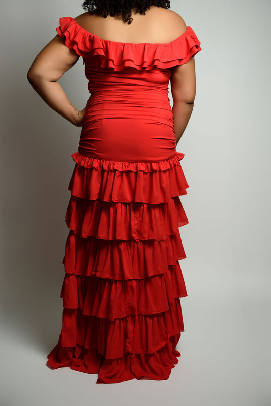 Curvy Ruffle Off-Shoulder Split Maxi