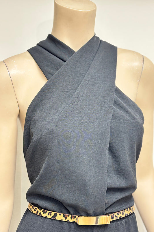 Crisscross Halter Low Back Jumpsuit