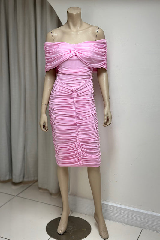 Off-Shoulder Ruched Midi Dress