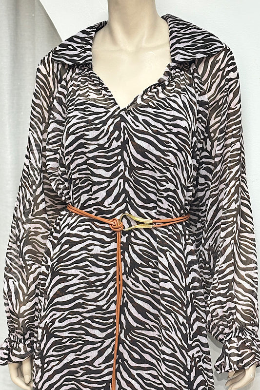 Zebra Print Collared V-Neck Flowy Dress