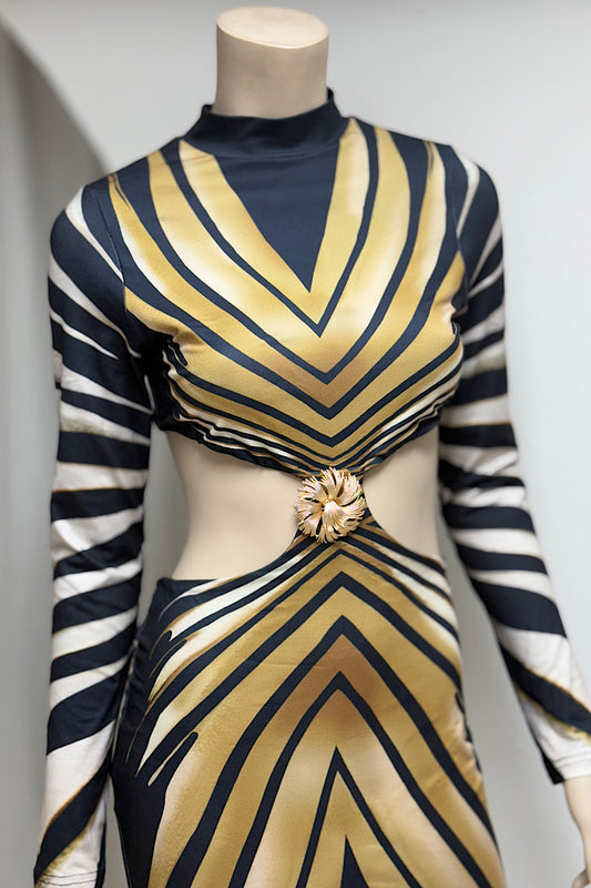 Off Shoulder V-Cut Wire Stretch Midi Dress