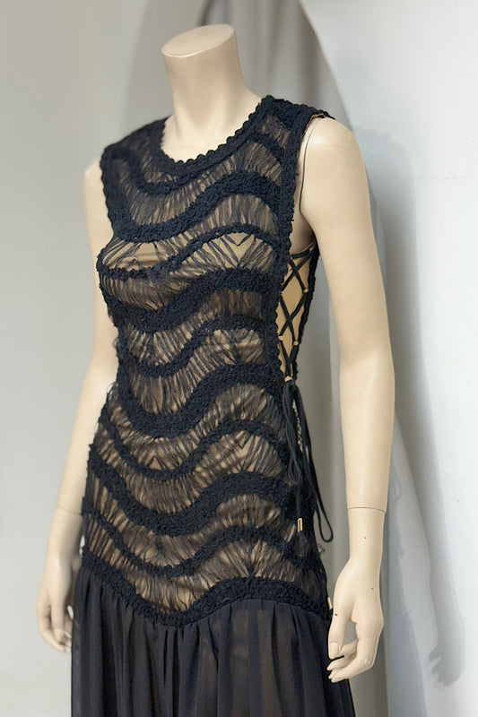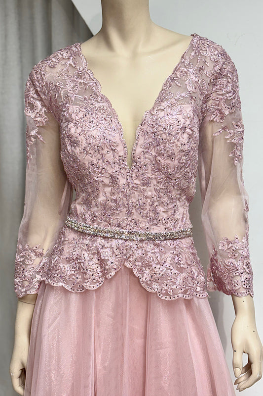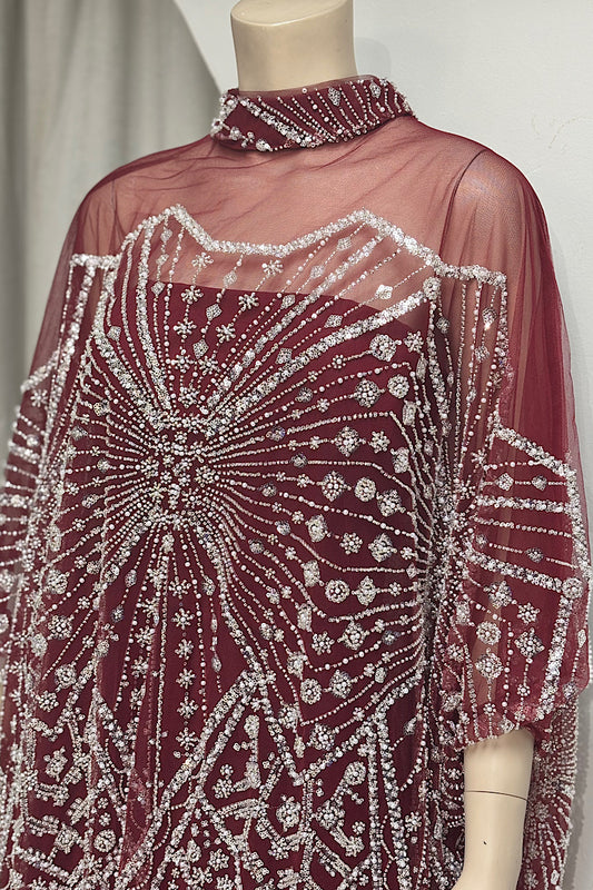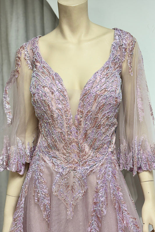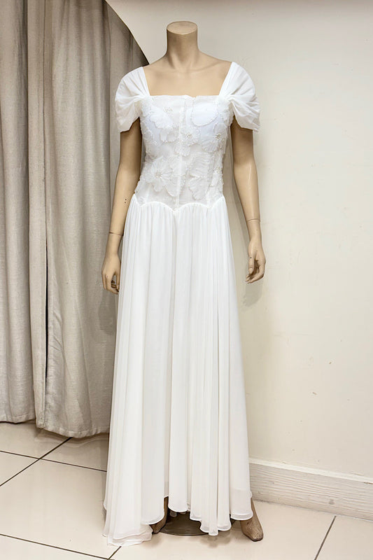 Beaded Flower Design Off-Shoulder Flowy Formal