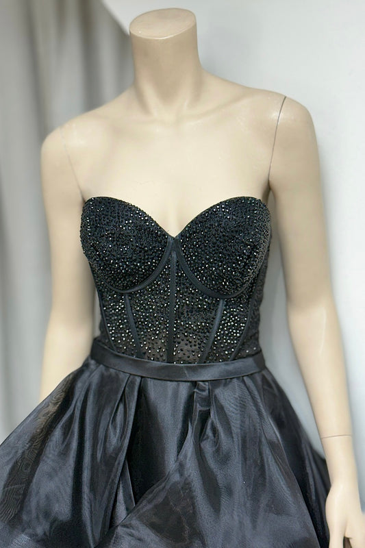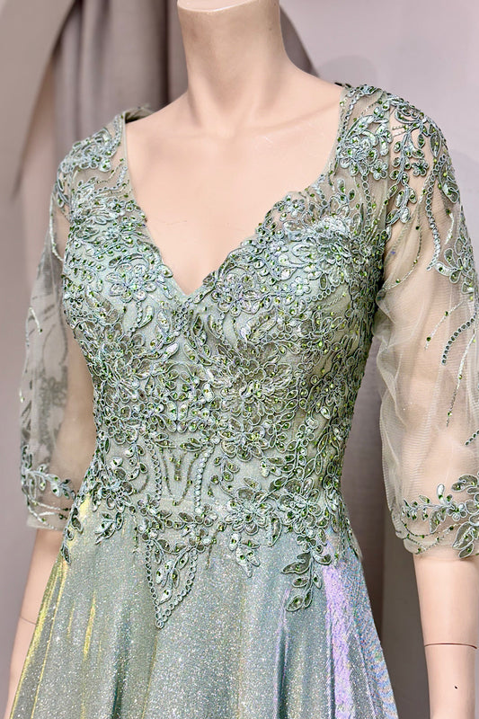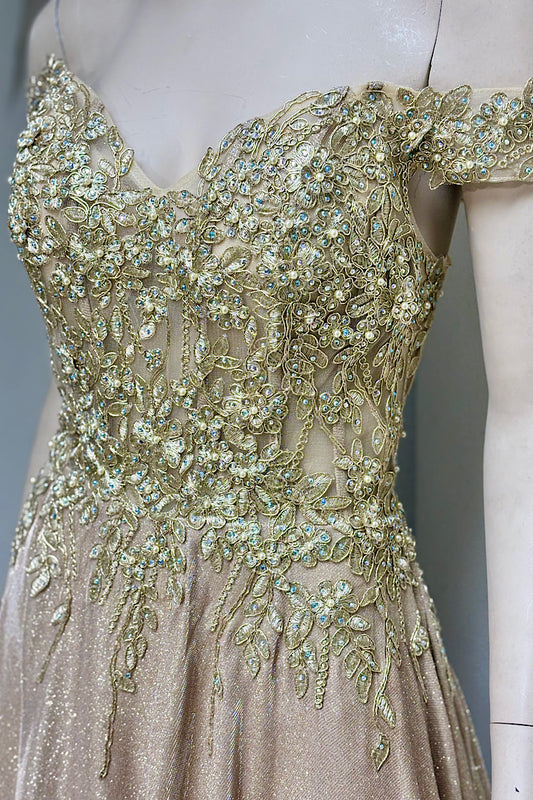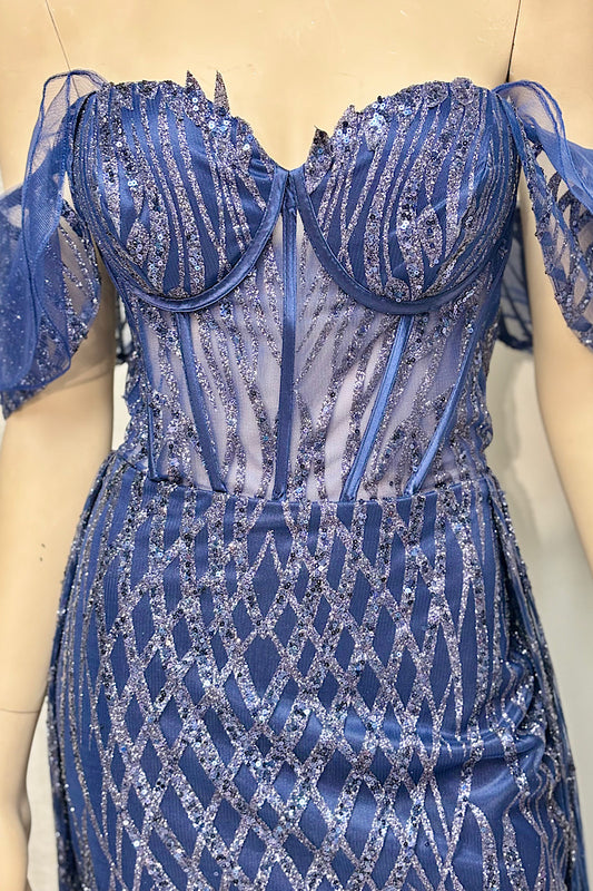 Sheer Sleeve Off-Shoulder Corset Sequin Formal