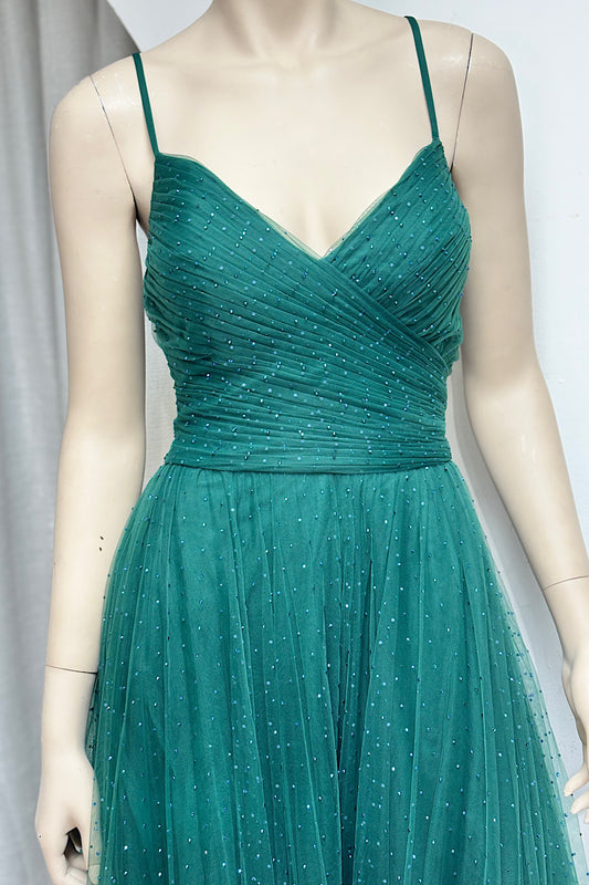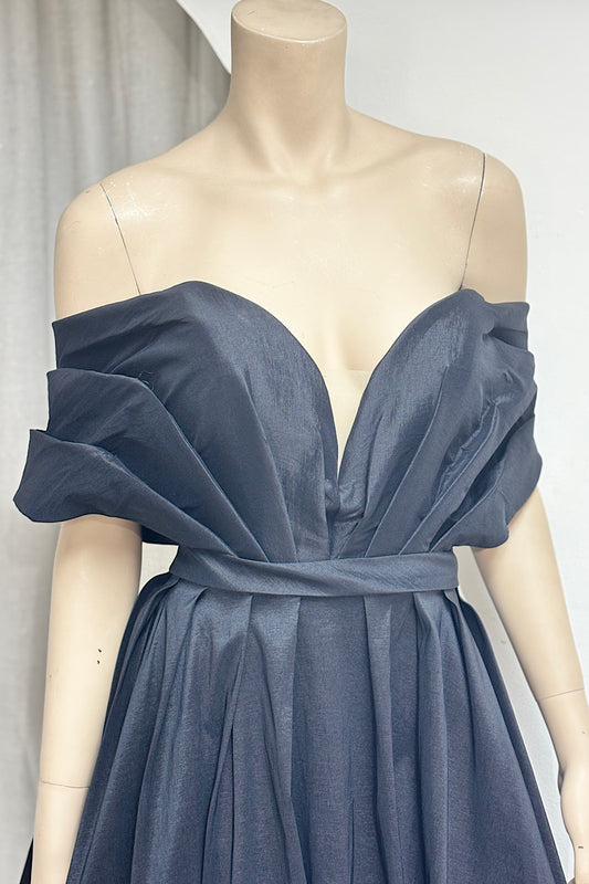 Ruffle Off-Shoulder V-Cut Shimmer Formal