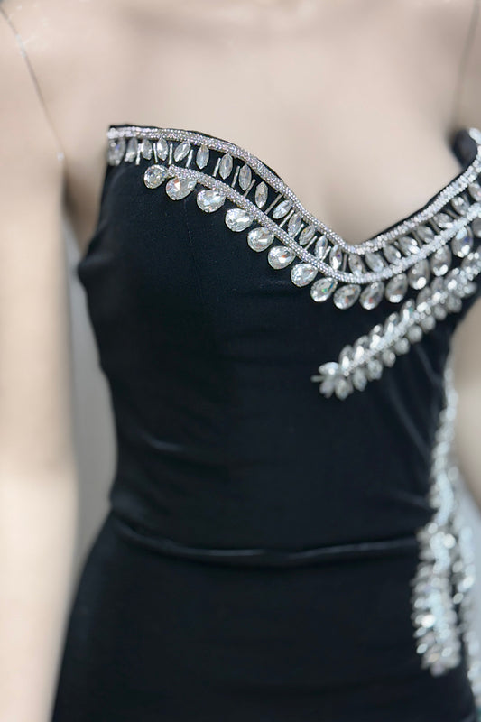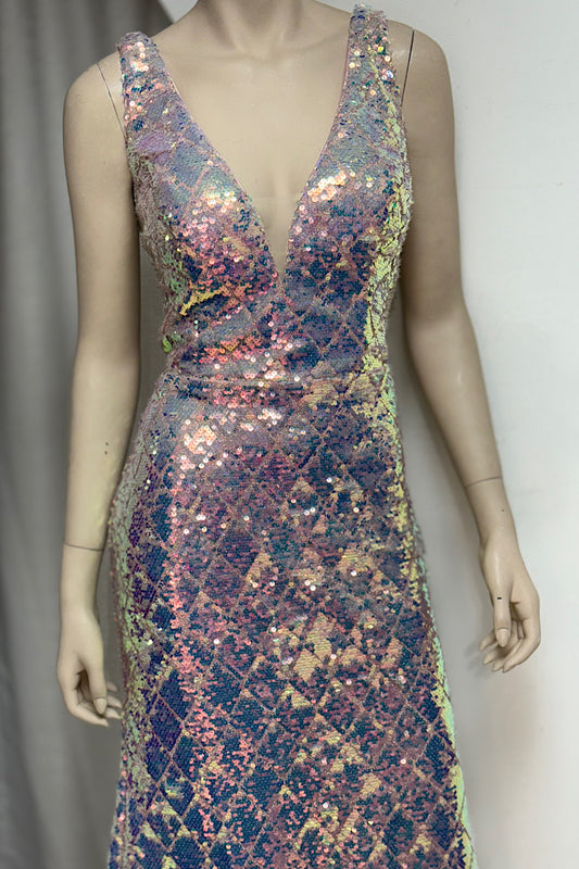Diamond Patten Sleeveless V-Neck Sequin Formal