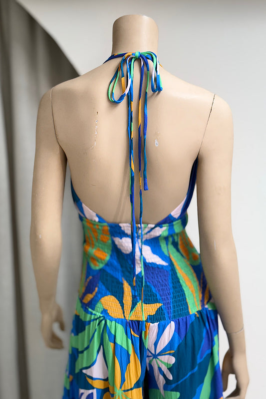 Smock Waist Tier Legged Halter Jumpsuit