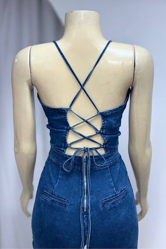 Denim Strap-Up Romper