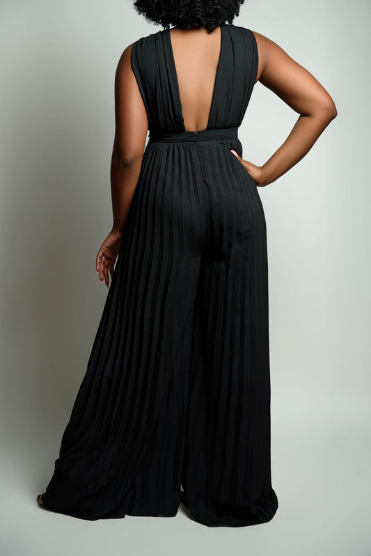 Pleated V-Neck Jeweled Jumpsuit