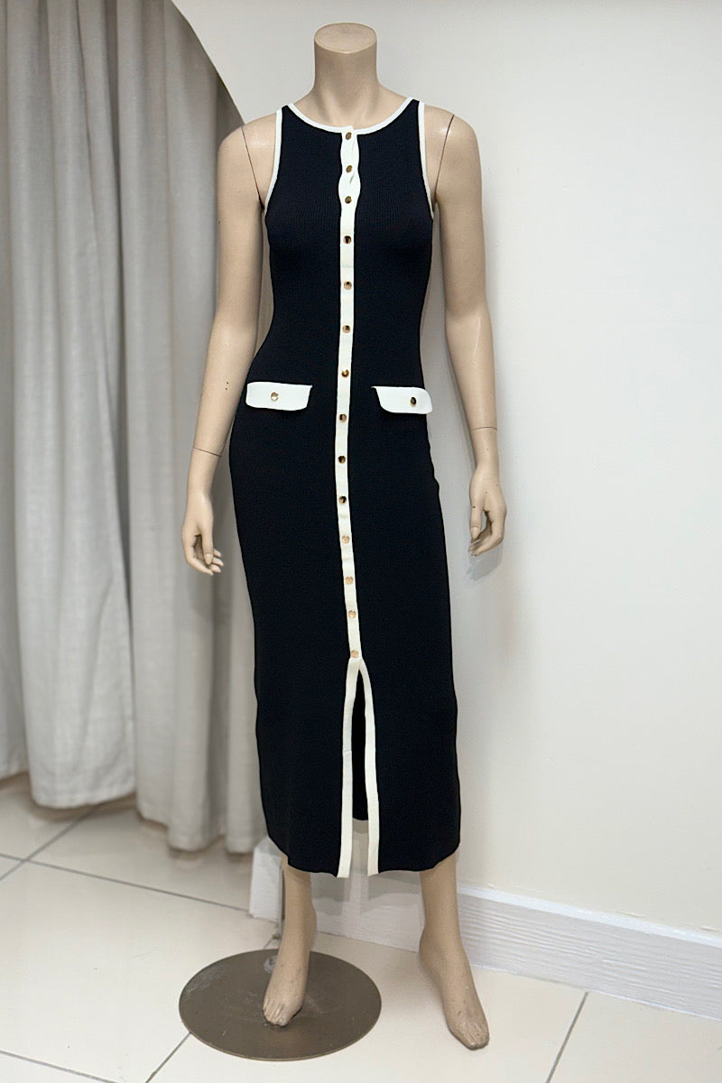 This fitted sweater dress features elegant gold buttons and chic false pockets, making it a versatile and stylish addition to any wardrobe. Perfect for both casual and dressy occasions, this MIDI dress will add a touch of sophistication to your look. Elevate your style with the Gold Button Pocket Detail Sweater Dress!