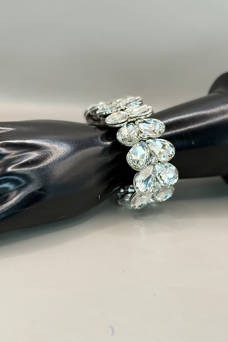 Elevate your style with this bracelet, designed to comfortably stretch and fit any wrist. Its shimmering stones catch the light beautifully, making it a versatile accessory for any occasion. Enjoy both elegance and ease with this effortlessly adaptable piece.