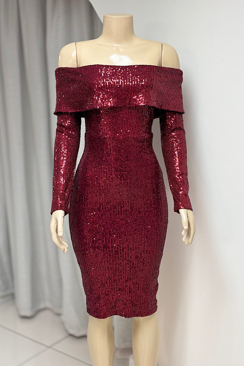 Full Sequin Off-Shoulder Dress
