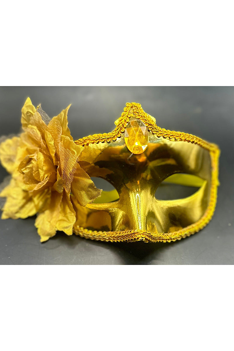 Turn heads with the Gold Flower Mask, featuring a delicate side flower accented by a yellow rhinestone center and a luxurious gold embroidered rim. Available in gold and yellow, this masquerade mask blends elegance with stunning detail for unforgettable events.