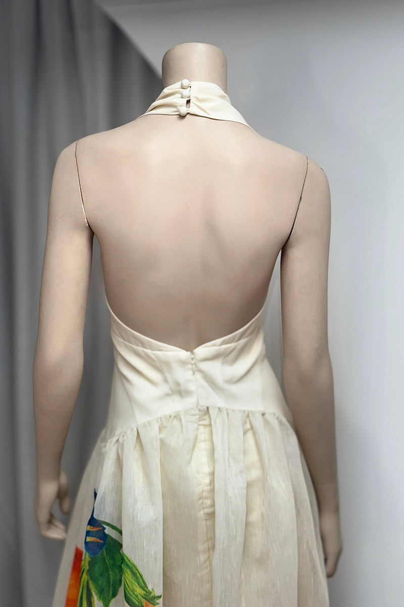 Elevate your style with our Halter Corset Floral Flare Dress. The halter design and low back add a touch of sophistication, while the illustrated fruit bottom and flowy fit bring a sense of playfulness. Perfect for a casual yet chic look, this dress is a must-have for any fashion-forward individual. Try it today and make a statement!
