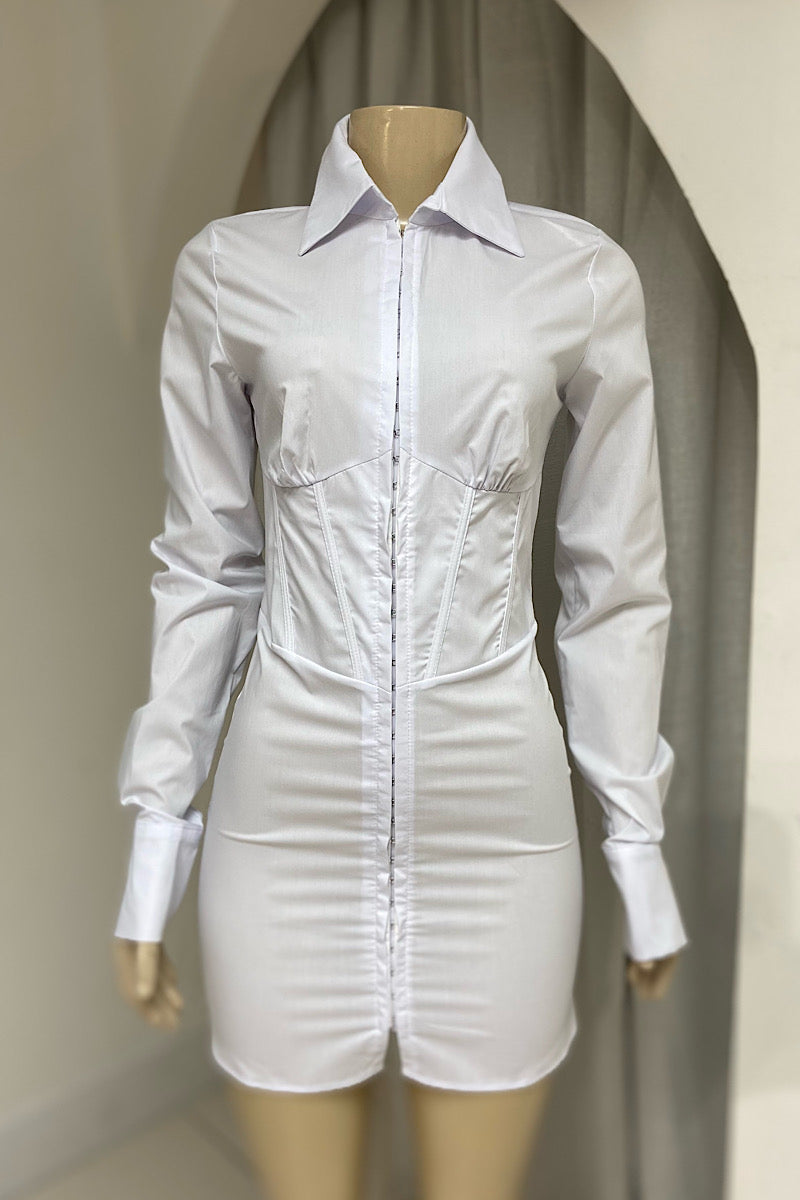 Long Sleeve White Corset Detail Dress