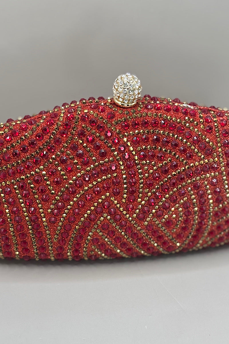 Elevate your formal ensemble with this sophisticated narrow clutch, featuring striking abstract patterns enhanced by gleaming rhinestone embellishments. The curved silhouette offers an elegant, contemporary edge perfect for evening events and special occasions. Choose from three luxurious colorways—rich red, deep green, or radiant gold—each designed to complement your most refined looks. The streamlined profile makes it ideal for carrying essentials while maintaining an understated glamour that speaks to discerning taste.