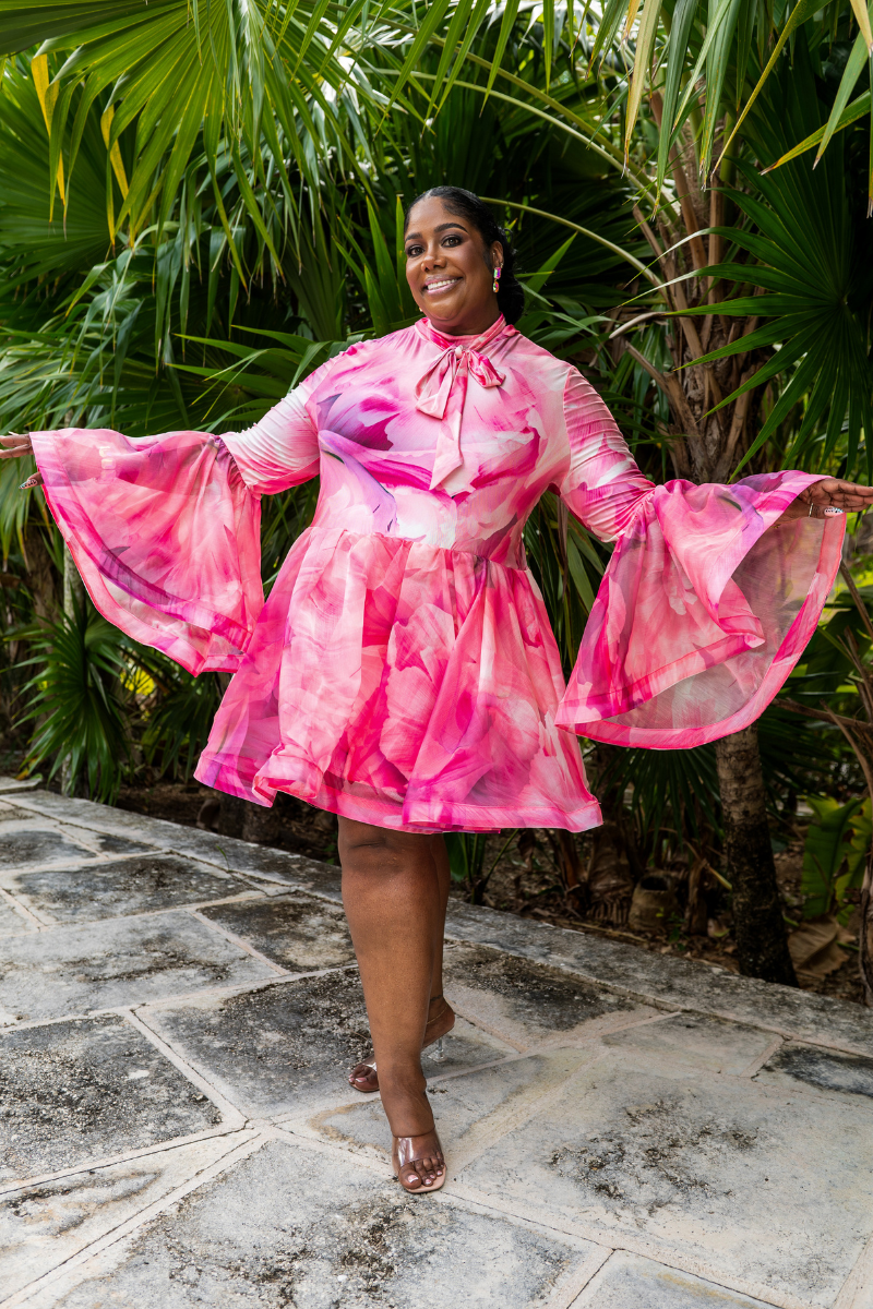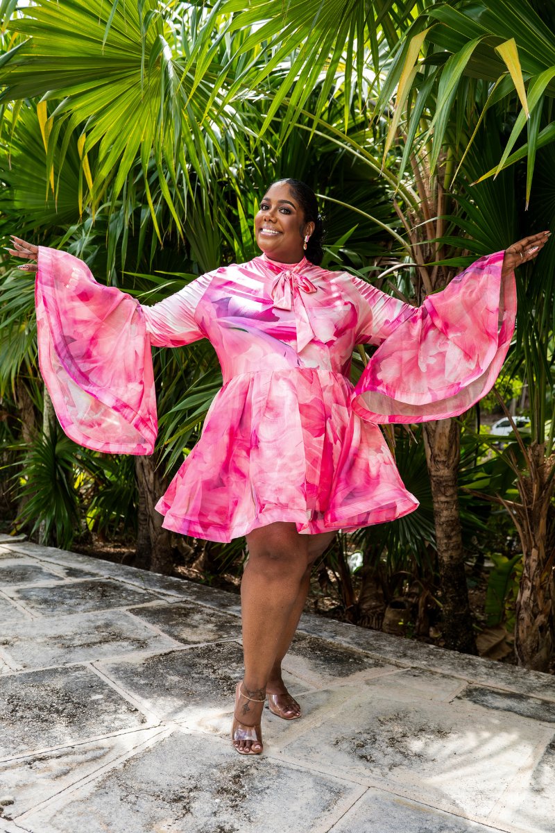 The fluted sleeve design adds movement and dimension, while the high neck creates a polished, modern silhouette. Perfect for nights out, special occasions, or when you want to make a statement. The mini length keeps things playful and contemporary.