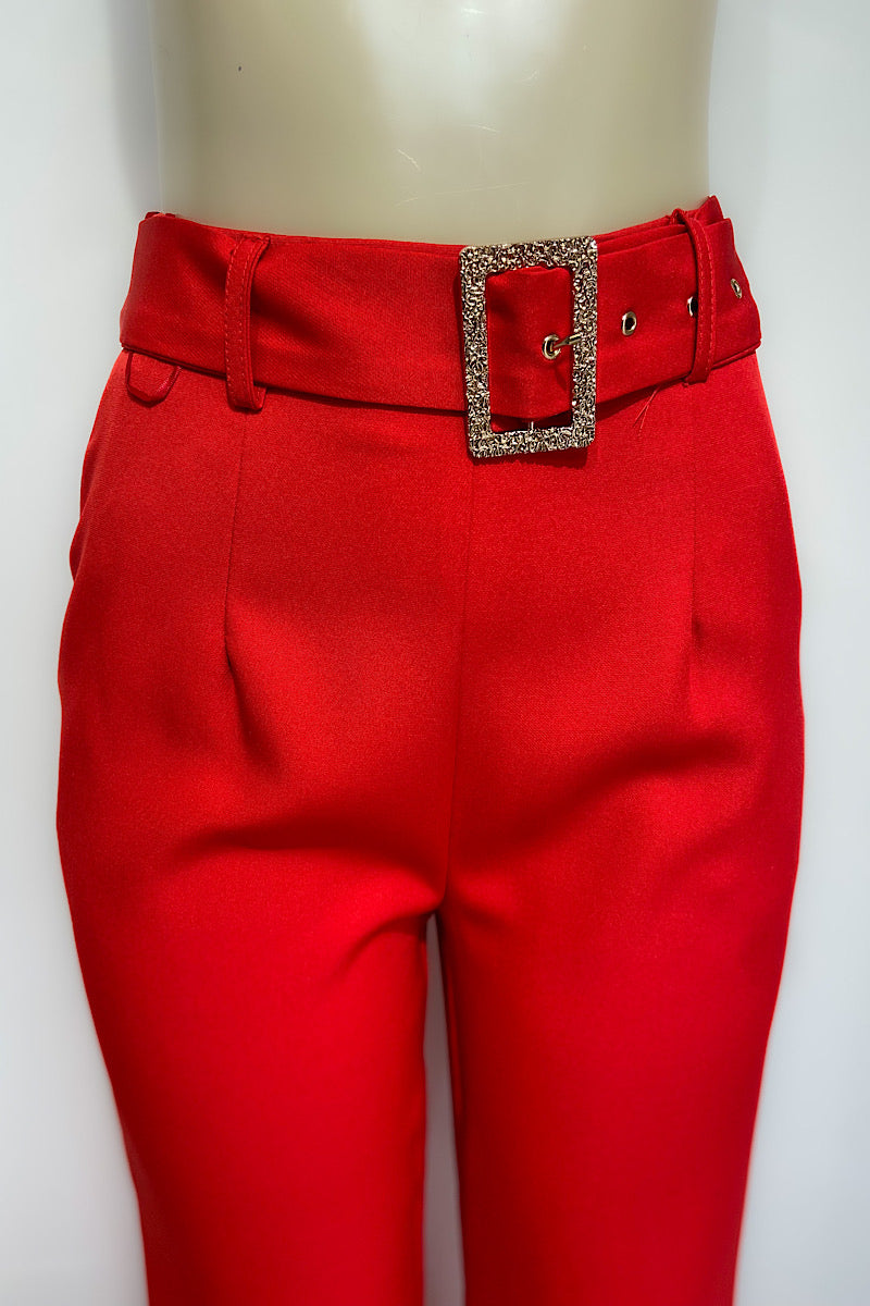 Red Wide Leg Pants w/ Buckle