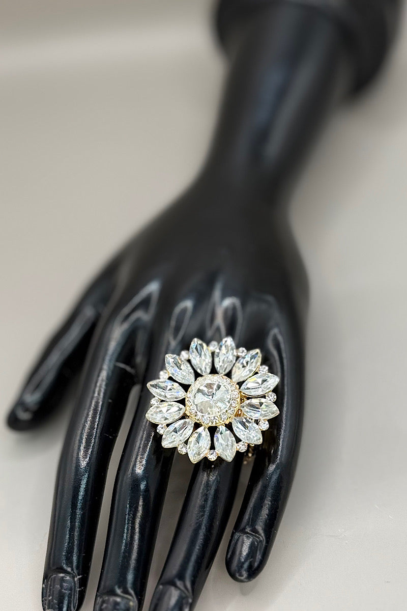 Make a dazzling statement with the Rings Gold Clear Collection 2, featuring large clear stones set on elegant gold brackets. These rings combine bold sparkle with timeless sophistication to elevate any look.