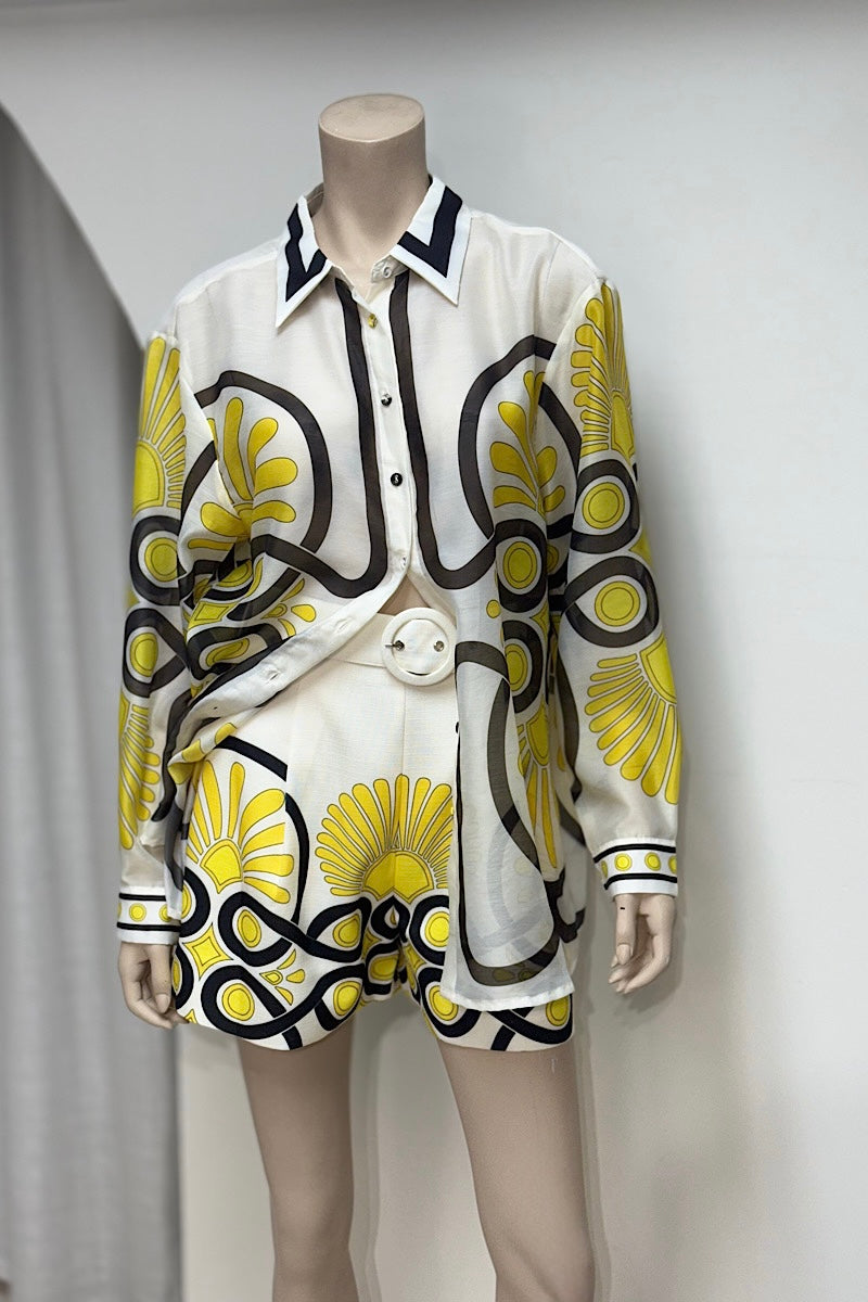 Experience effortless style with our Sheer Top Printed Linen Short Pant Set. The lightweight sheer top and short pants provide both comfort and breathability, while the vibrant multi-colored pattern adds a touch of excitement. Elevate your wardrobe with this versatile and stylish ensemble!