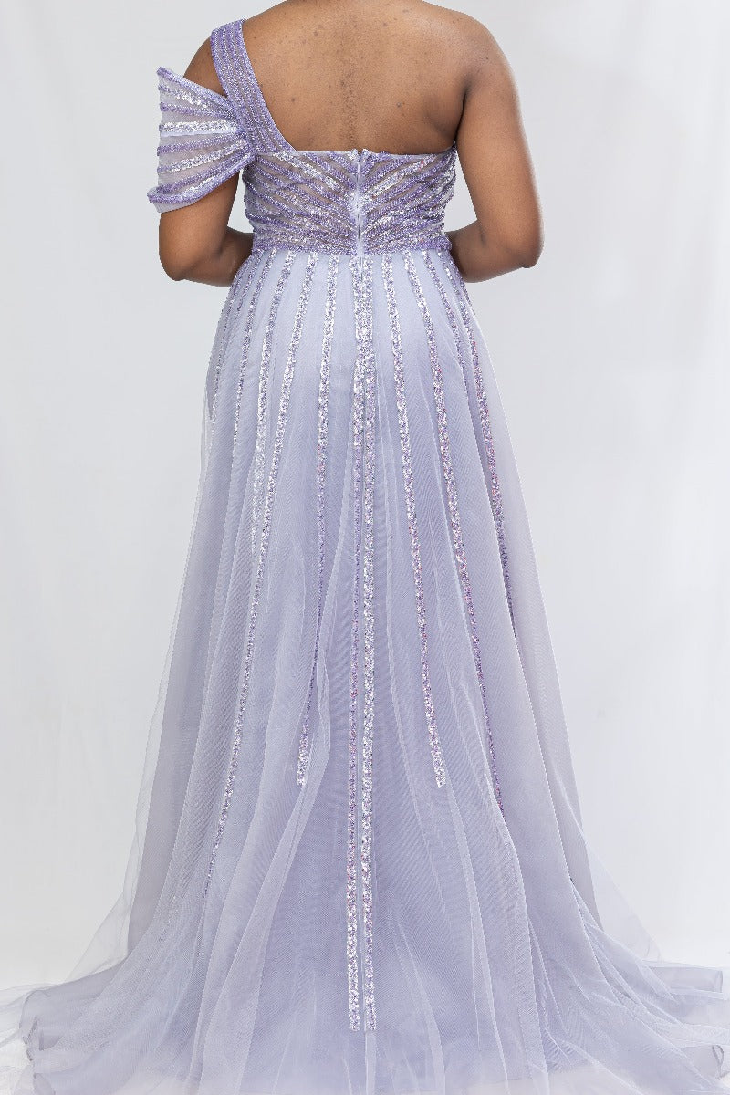 Step into sophistication with the Elegant Shimmer One-Shoulder Formal dress. Featuring a graceful overlay skirt, a high split, and a flattering one-shoulder design, this gown combines elegance and allure for a truly unforgettable look.